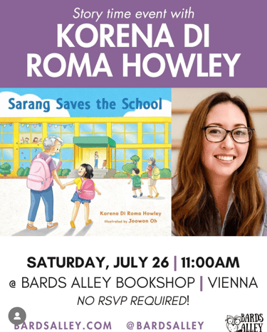 Sarang Saves the School Storytime and Book Signing Bard's Alley Bookshop Vienna, Virginia